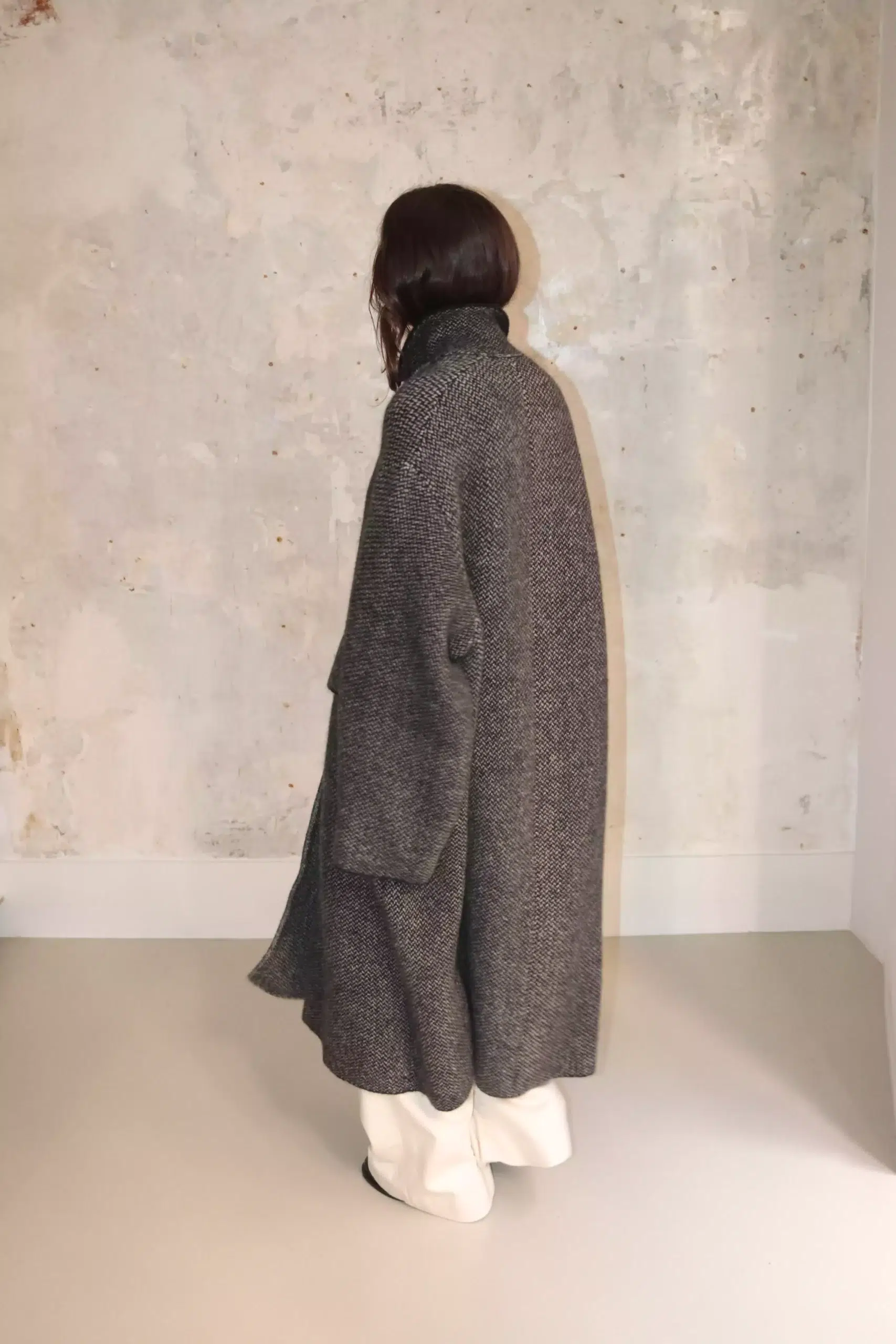 Evan Kinori – Zip Jacket Two Undyed Wool Tweed – Dark Beige