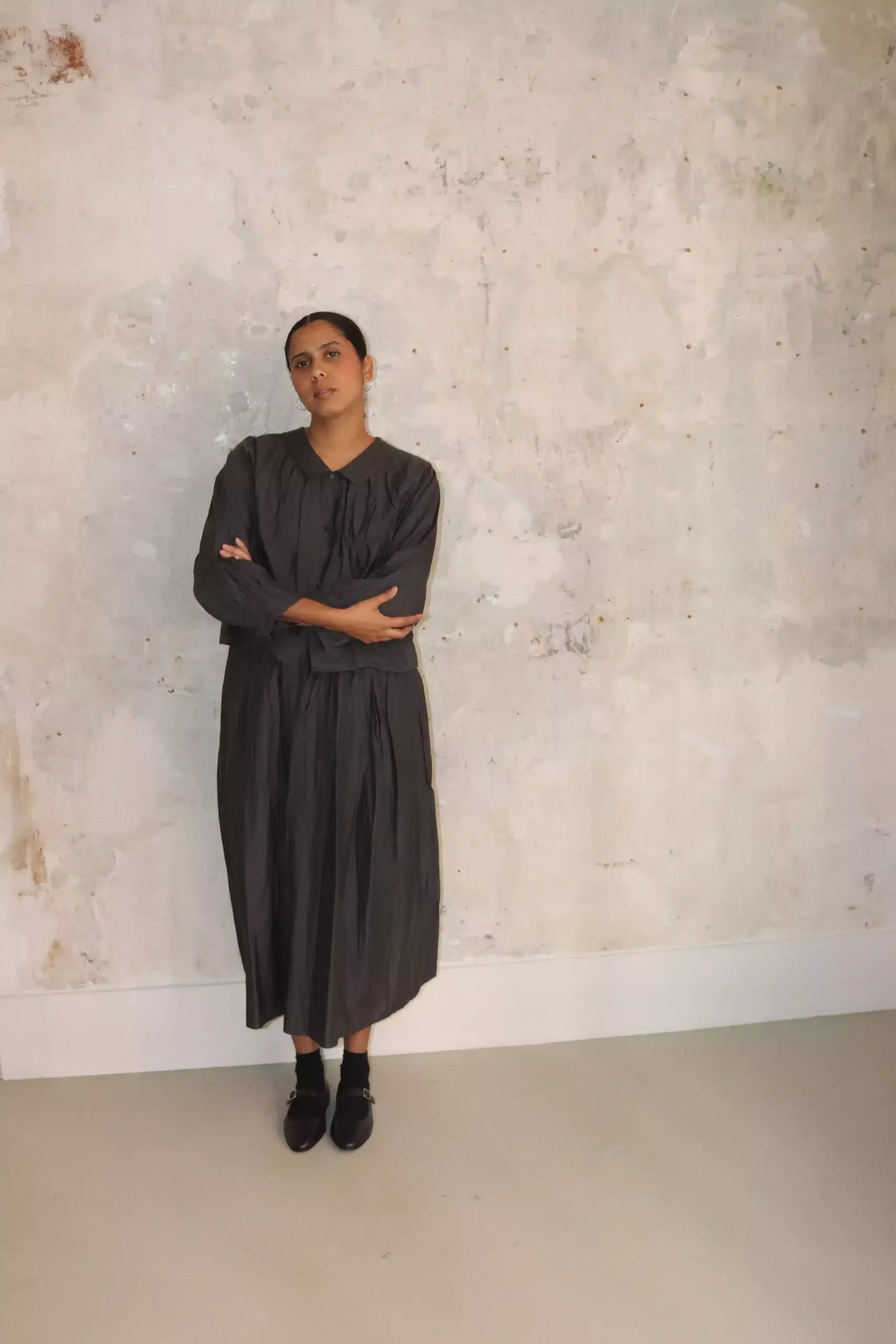 Toujours – Random Pleated Maxi Skirt MM43VK03 – Charcoal Brown