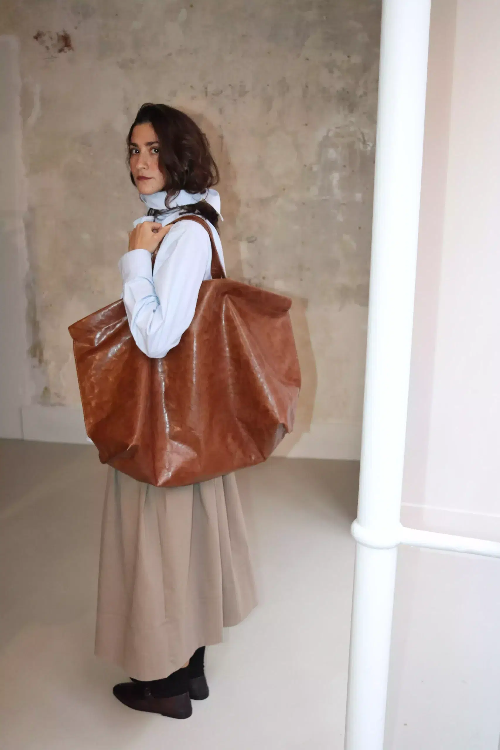 Bea Mombaers bags - SHOPPER MIDI Tumbled - COGNAC