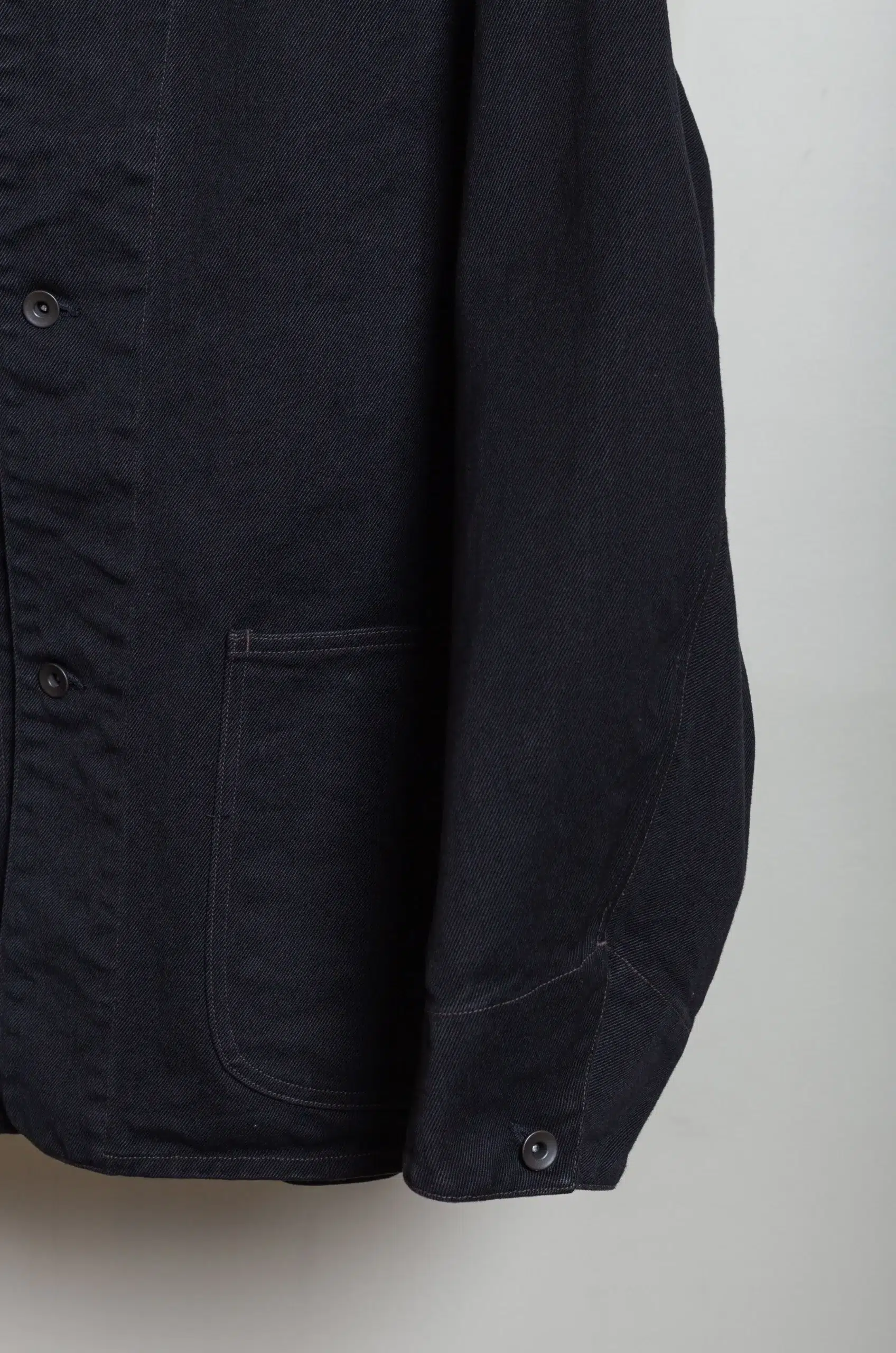 The Comoli – Denim Work Jacket D01-01002 – Black blends traditional workwear heritage with refined minimalism. To begin with, the deep black denim offers a clean, versatile foundation that pairs effortlessly with both casual and elevated outfits. Moreover, the sturdy yet soft fabric feels comfortable while maintaining structure, allowing the jacket to age gracefully over time.