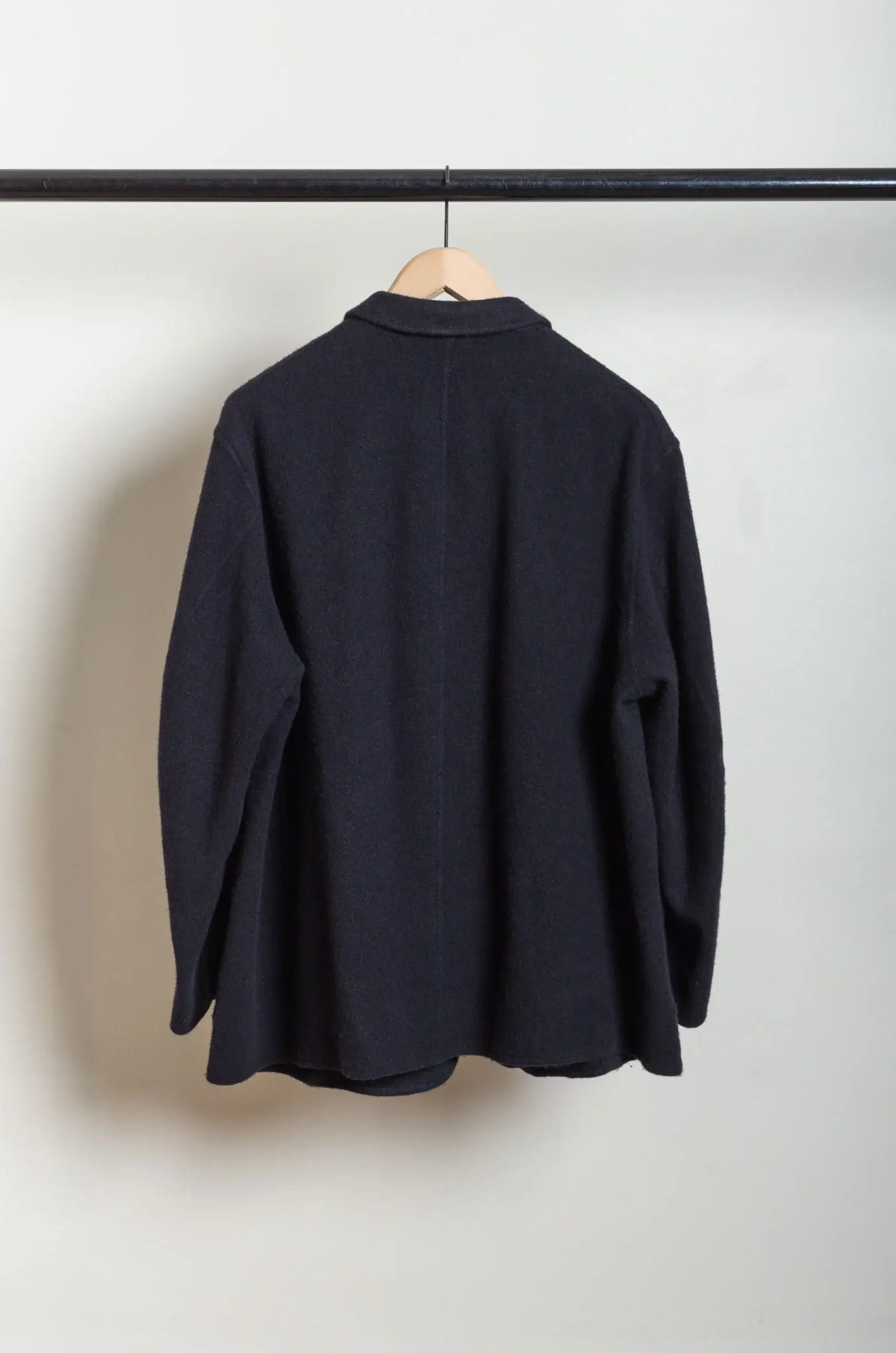 The jacket features a relaxed yet balanced silhouette, offering freedom of movement while maintaining a clean and modern line. In addition, the minimalist detailing highlights Comoli’s focus on function, proportion, and material quality rather than excess design. Every element feels intentional and understated.