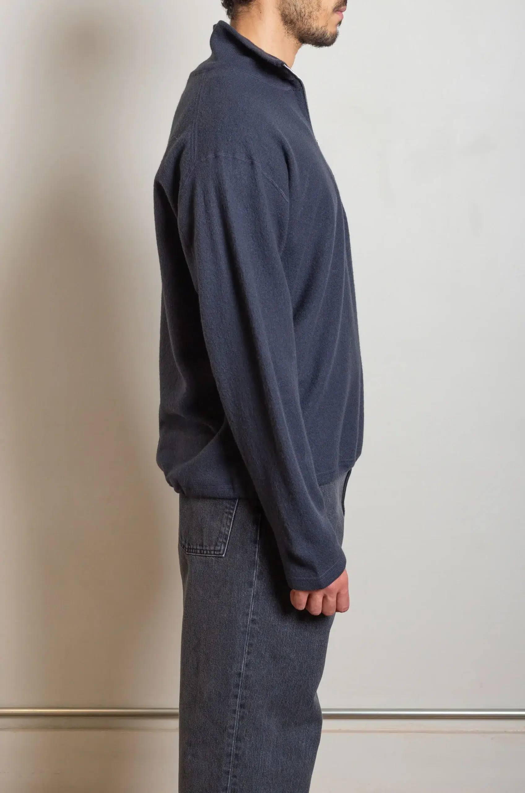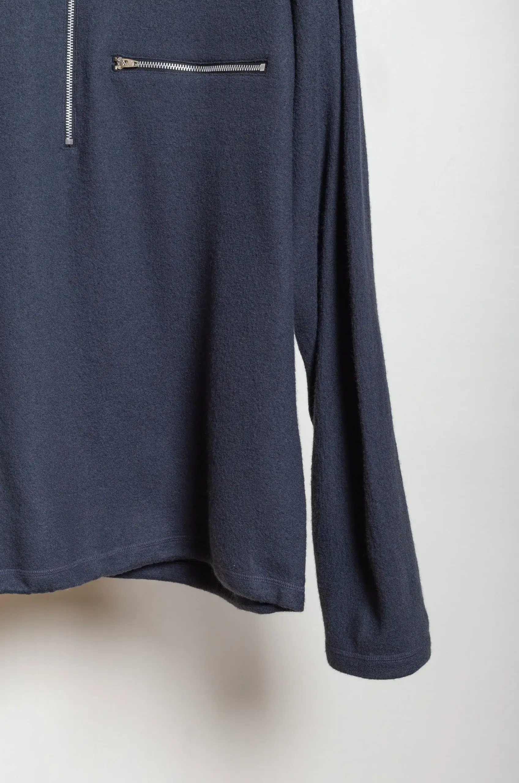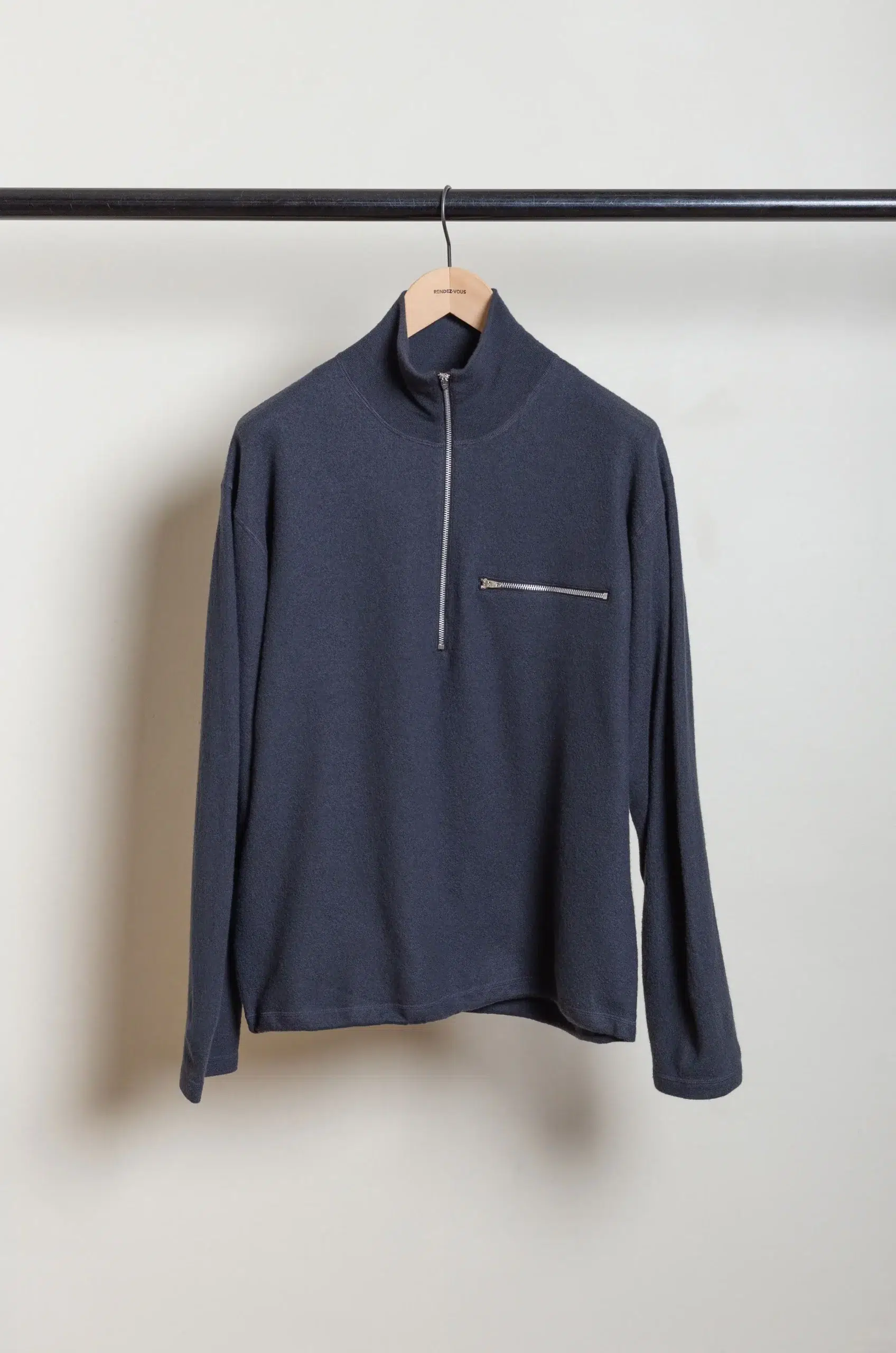 Ylève – ULTRAFINE MERINO MILLED WOOL KN HALF ZIP P/O – SMOKY NAVY
