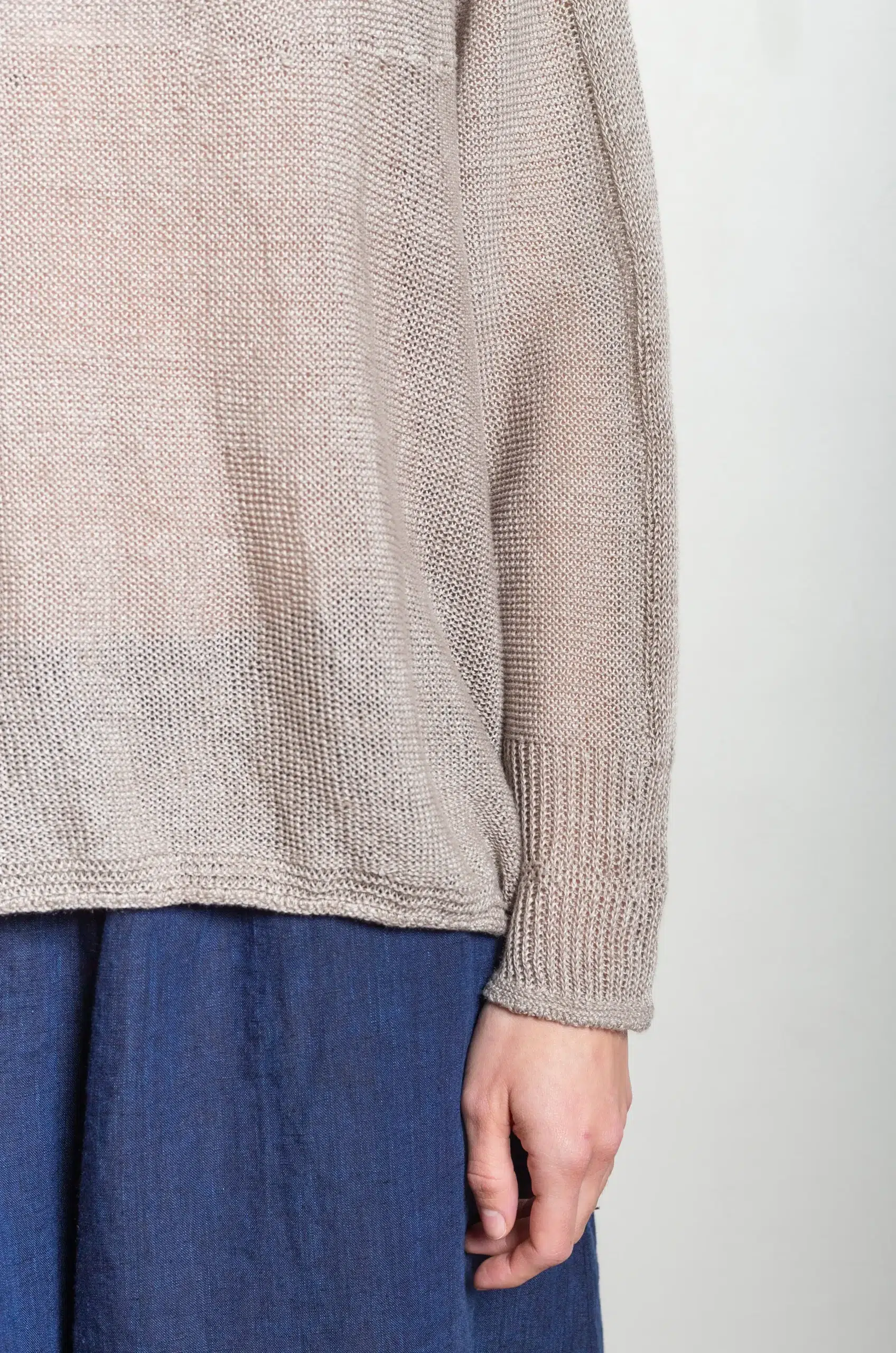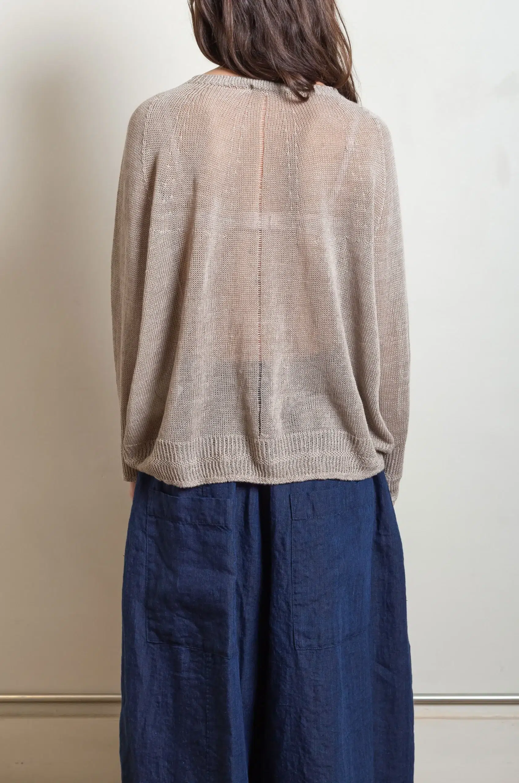 The pullover silhouette appears relaxed yet thoughtfully constructed, allowing fluid movement and a natural drape. In addition, the lightweight structure makes it ideal for layering across seasons, whether styled alone or combined with shirts and outerwear.