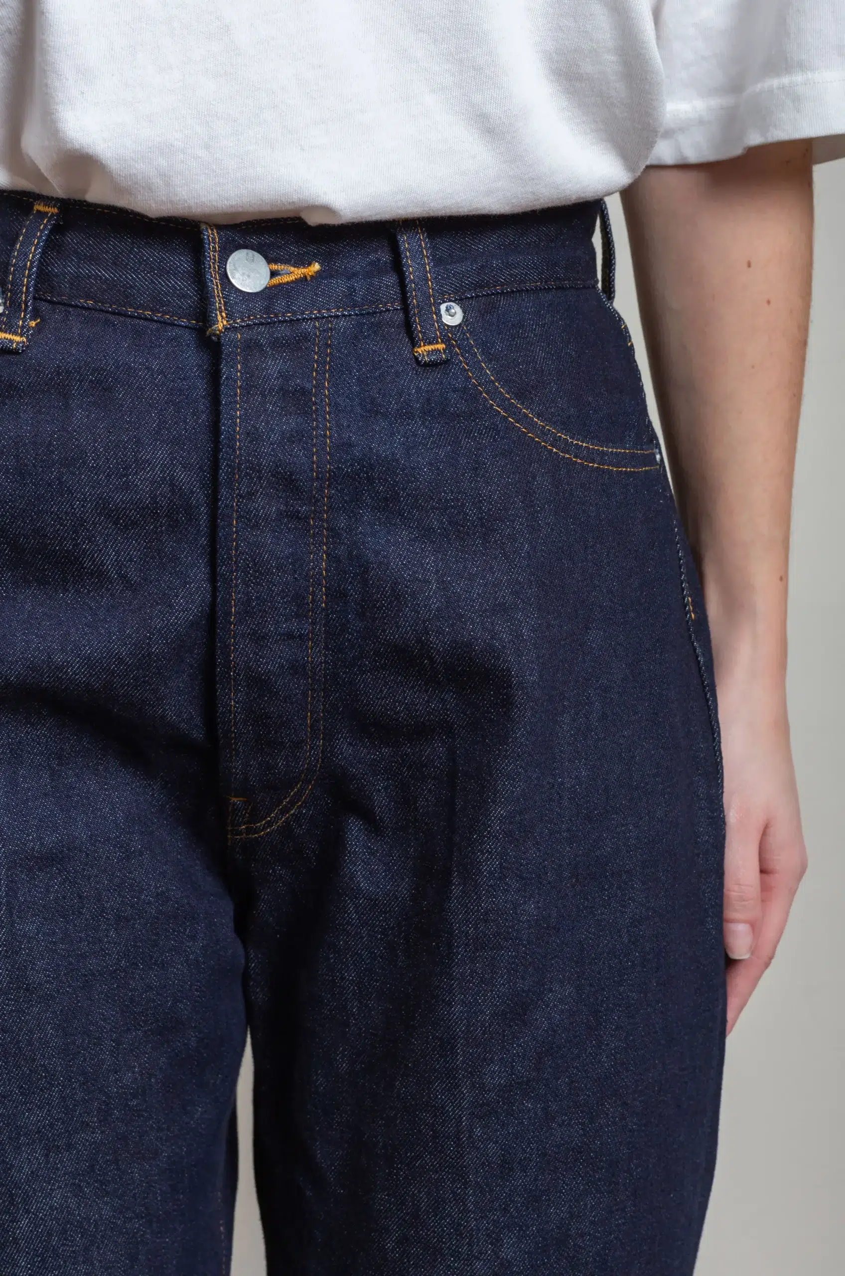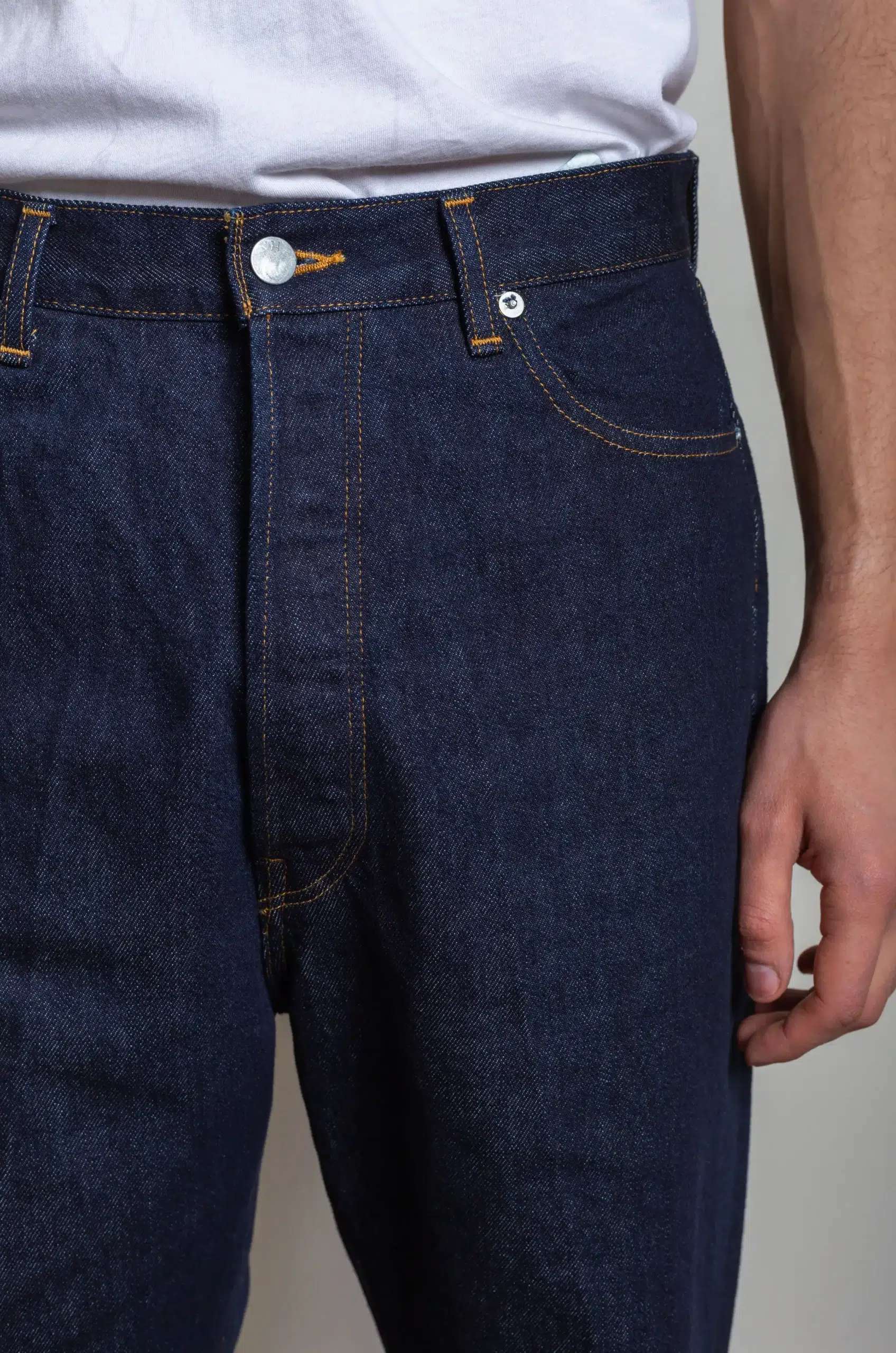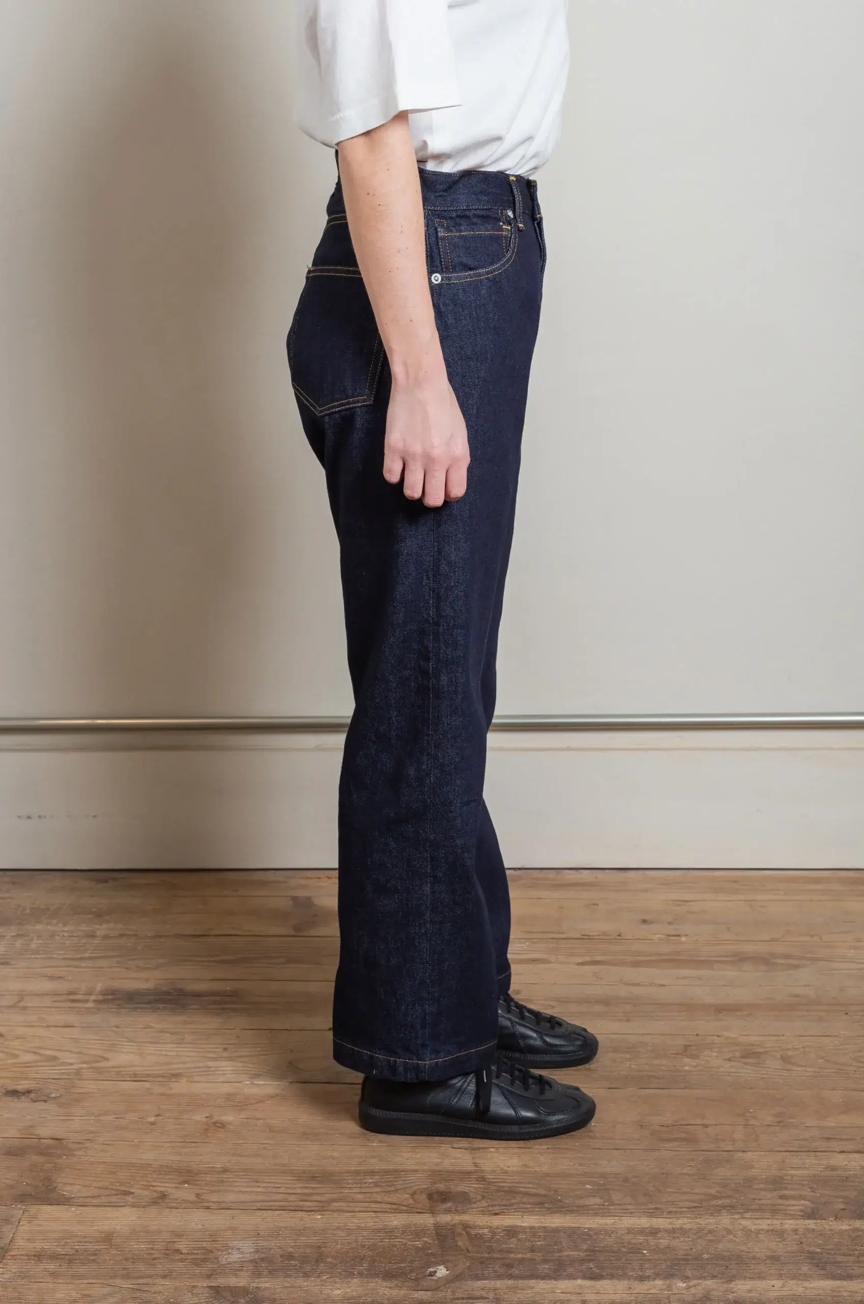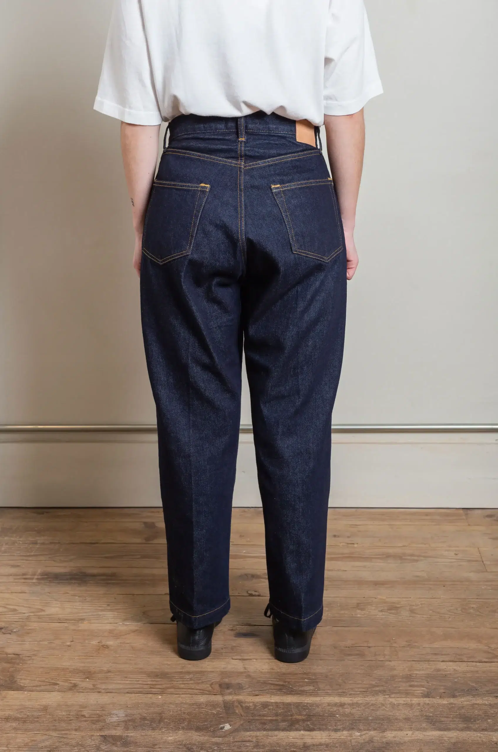 In addition, the cut balances broad proportions with precise lines, creating a silhouette that is both modern and timeless. Because of this, the pants offer versatility, pairing effortlessly with shirts, knitwear, or casual outerwear. Furthermore, the careful construction ensures durability while enhancing the way the denim evolves over time.