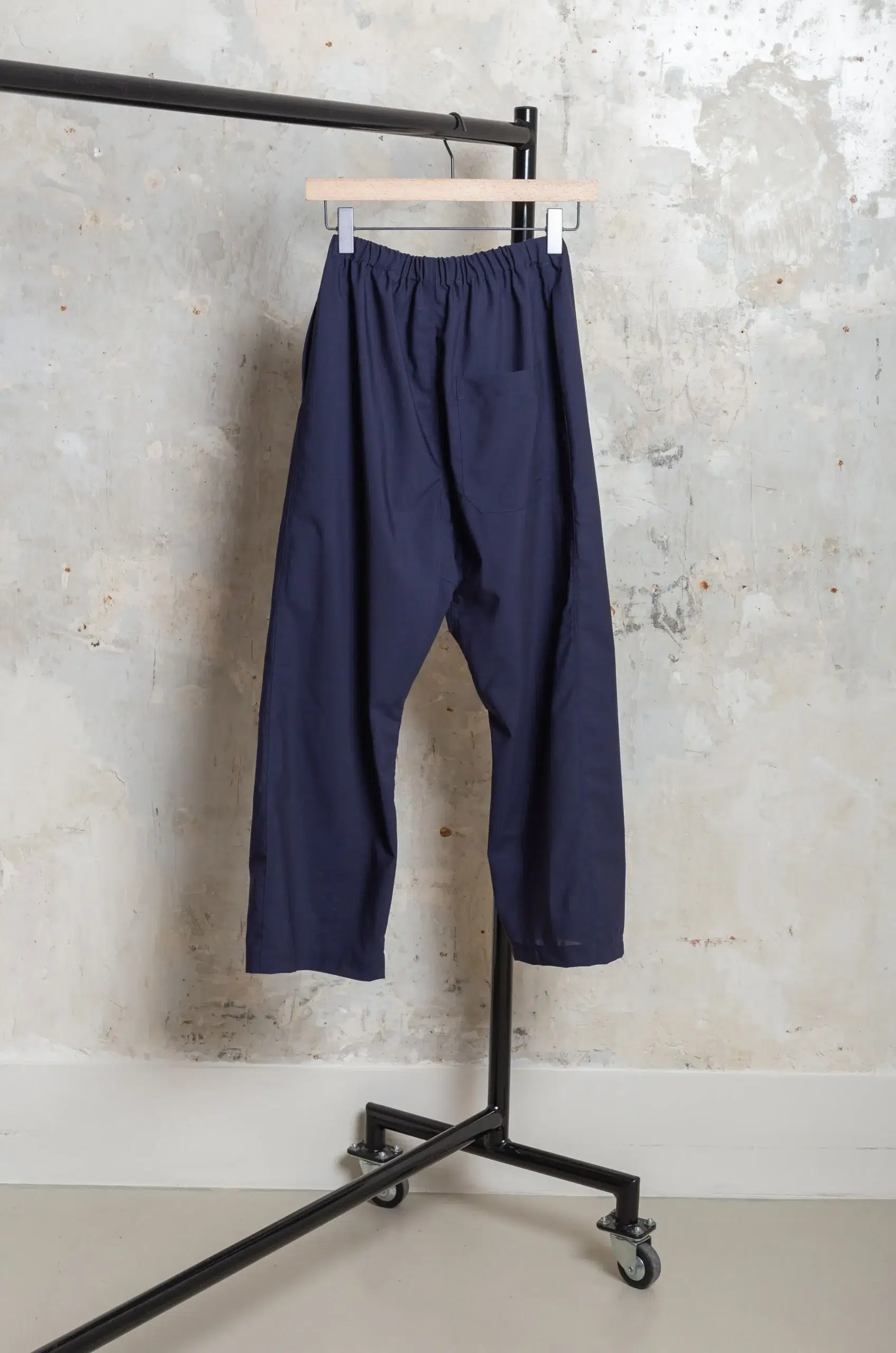 The relaxed low crotch cut enhances freedom of movement while maintaining a deliberate and sculptural presence throughout the day. In addition, the thoughtful construction reinforces the garment’s architectural identity, while preserving softness and wearability in every context. You can rely on this design for layered minimalist outfits, contemporary tailoring combinations, or refined casual compositions where proportion, balance, and subtle sophistication remain essential.