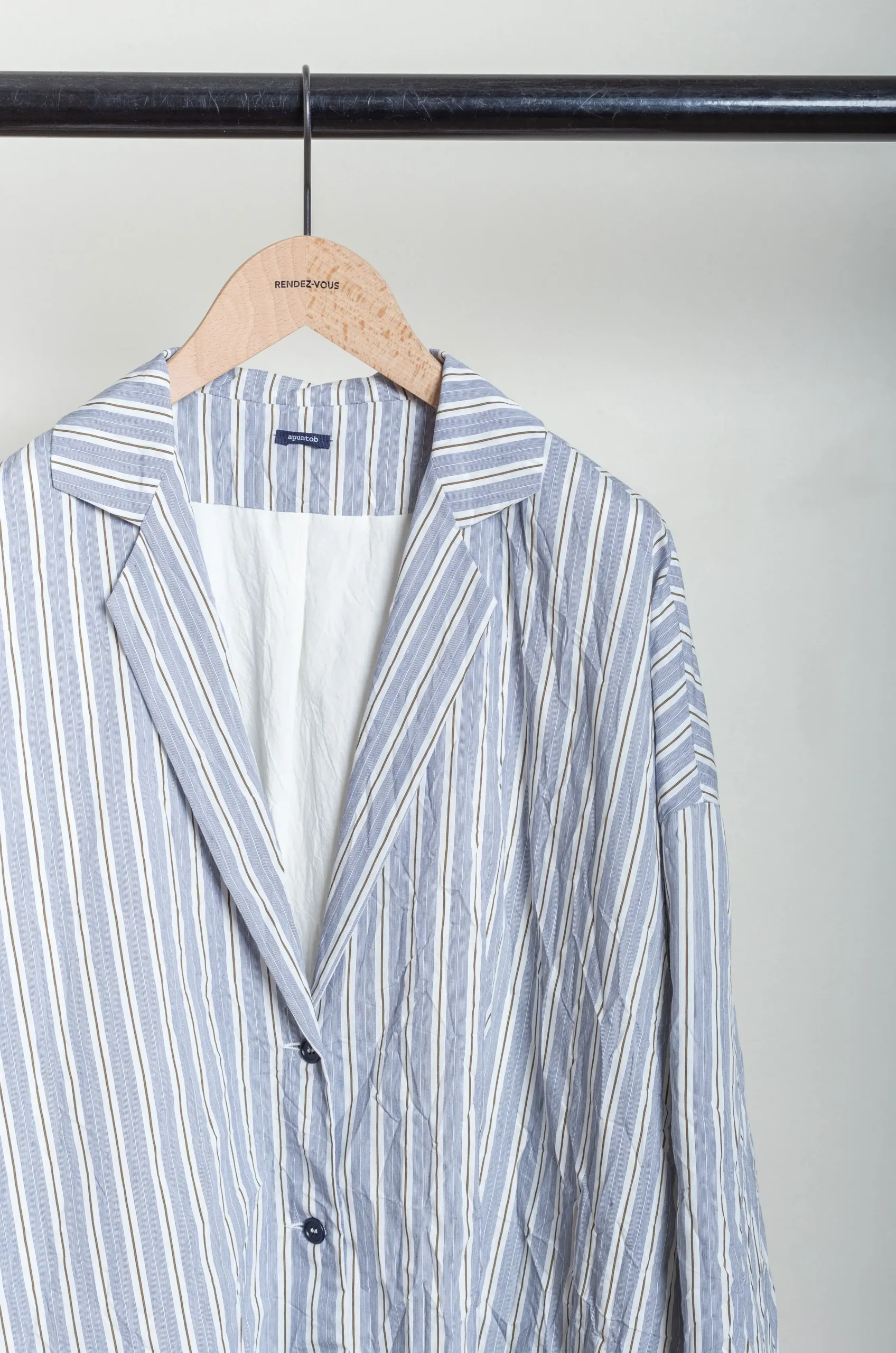 The jacket’s design balances relaxed ease with precise construction, enabling fluid movement and effortless layering over blouses, dresses, or knitwear. In addition, the thoughtfully designed details—such as functional pockets, subtle buttons, and a tailored collar—highlight the brand’s meticulous approach to craftsmanship. Consequently, this jacket elevates everyday dressing with quiet sophistication, remaining versatile, elegant, and unmistakably ApuntoB.