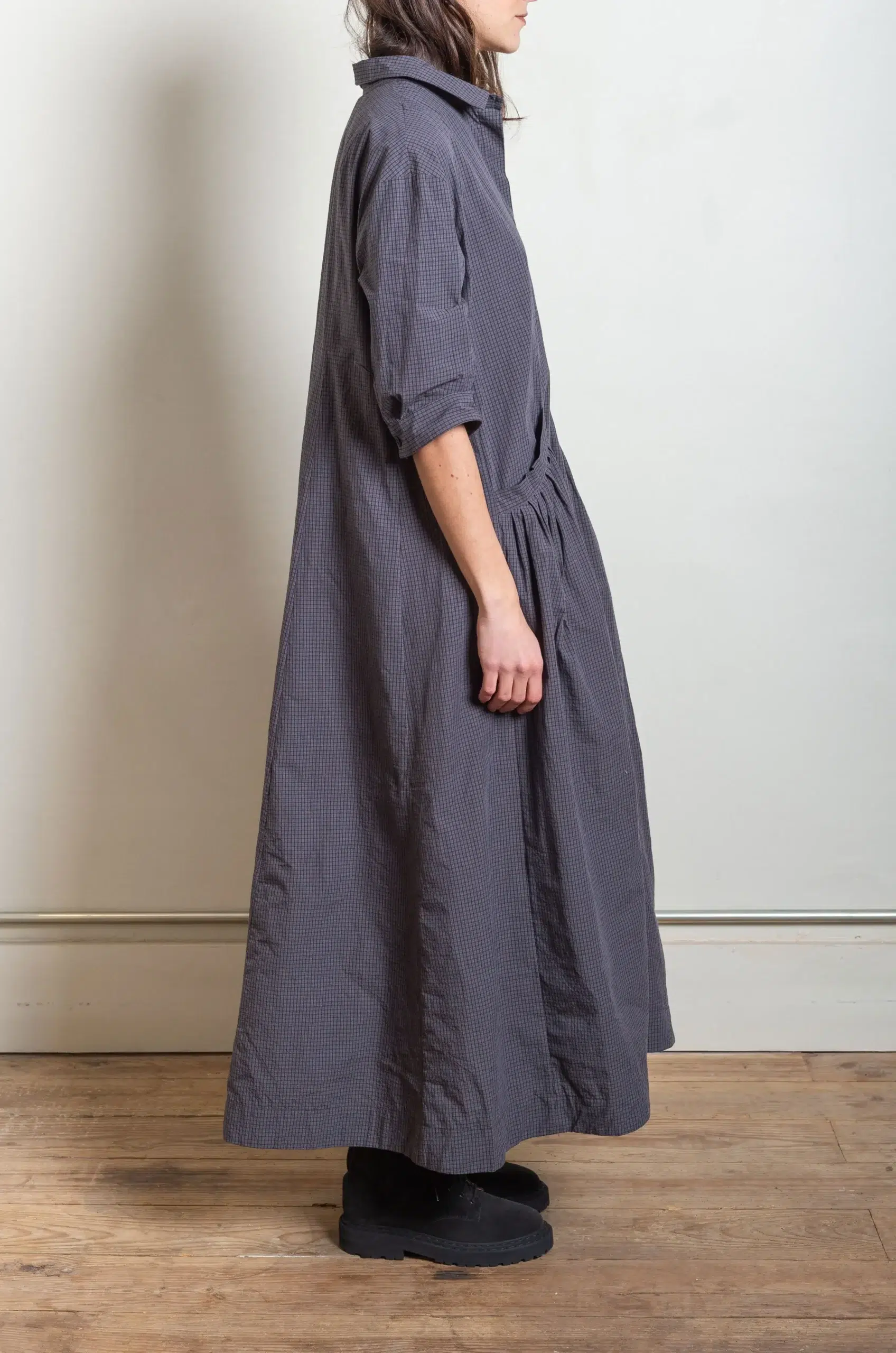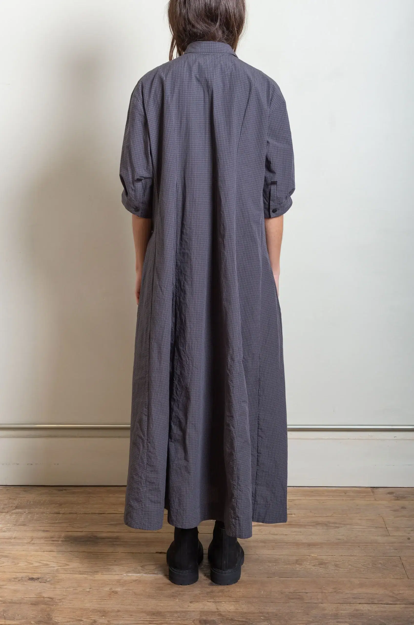 In addition, the relaxed silhouette offers ease without sacrificing structure, making it suitable for everyday wear or more considered occasions. Because of this, the dress can be worn on its own or layered with knitwear and outerwear throughout the seasons. Furthermore, subtle details and precise finishing reveal Bergfabel’s dedication to craftsmanship and authenticity.