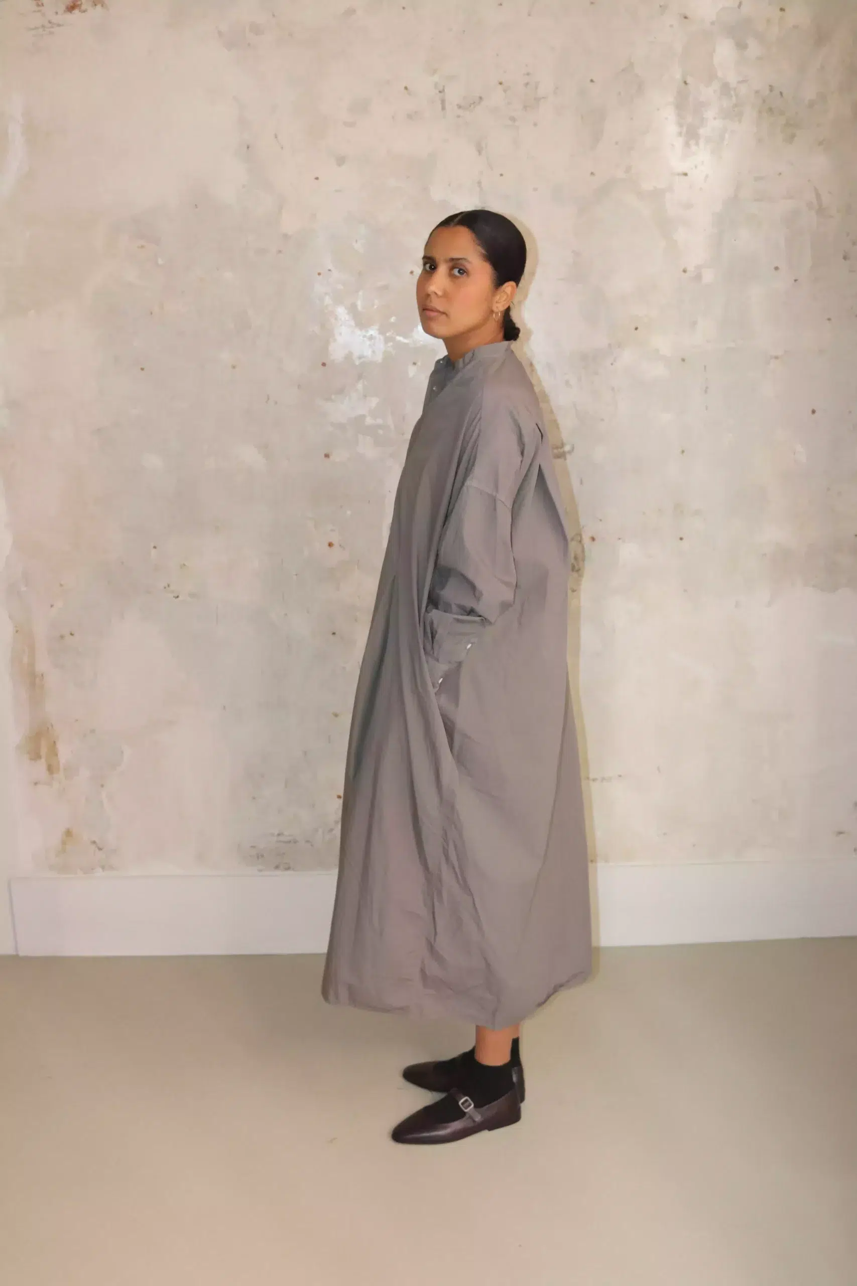 Toujours – Front Wide Tuck Shirt Dress MM43HD03 – Grayish Sage
