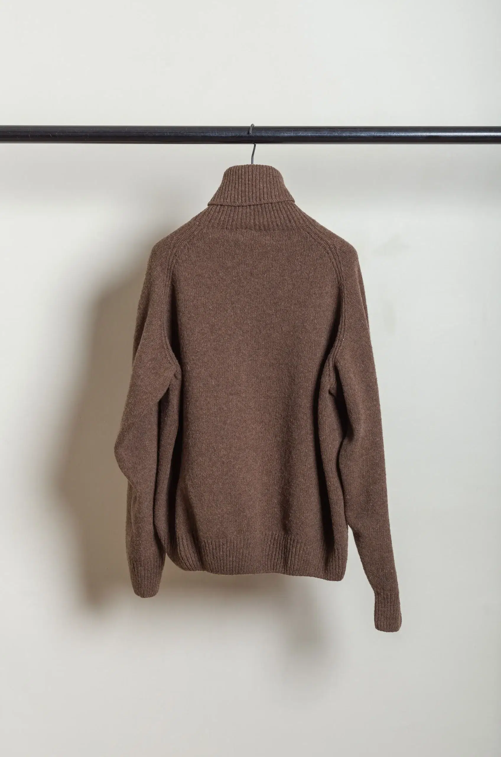 The warm Burel Brown shade evokes natural earthiness, bringing understated richness to any outfit. In addition, the high neck provides both elegance and practical warmth, making it ideal for layering or wearing alone as a refined statement piece.